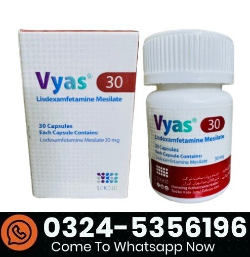 Vyas 30mg is a prescription medication that contains Lisdexamfetamine, a central nervous system stimulant commonly used to treat Attention Deficit Hyperactivity Disorder (ADHD) in adults and children. It helps improve attention span, focus, and impulse control, allowing patients to manage daily tasks more effectively.